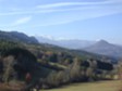 The snow topped mountains of the Pyrenees, from the valley below the Cathare Castle of Puivert South of the town of Mirepoix