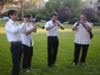 A small group of musicians,playing traditional Occitan instruments, in the Faubourg Park