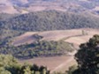 Mid December Hill walking on the Serre de Quintillan in the Corbières, near Cascastel - Looking down on a vineyard where the vines have been planted to follow the line of a track and the contours