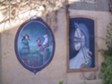 Murals on the wall of a traditional French Brasserie near the Cathedral in Béziers