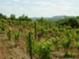 The fresh green growth on the vines waiting to fill out with bunches of grapes - another view, with the Corbières Hills in the background