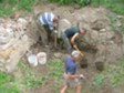 On an overcast Sunday morning half a dozen members of "Les amis du Château de Cascastel" began work clearing a fountain constructed in the 18th century by Joseph Gaspard Pailhoux, Seigneur of Cascastel (he survived the revolution to become Mayor). The village for the first time had clean water. At the side of it is another fountain which is missing the stone plaque. Both this and parts of the surrounding wall of the basin under the fountains were swept away by the flood of 1999