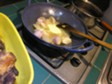 Day Three - The Sauce - Back to the Wok (hope you havn't washed it !) All that juice, etc from cooking the "Coq" - a large 'dollop' of real butter - then some chopped bacon (lardons), small shallots - all sweated together (cover the pan !) - (you can add, carrots, celery, whatever - but not traditional !) then the small mushrooms and the concentrated wine that you have put aside