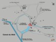 The highest point of the du Midi, 200 m above sea-level, is at the "Seuil de Naurouze" - La Rigole de la Plaine, where the water from the 17th century reservoir at Saint-Ferréol in the Montaigne Noire enters the Bassin