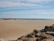 The almost empty beach Vendres-Plage, just over the wall on the right is the point where the river Aude joins the Mediterranean Sea, the river is the divide between the Hérault and Aude departments