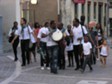The 21st June (Midsummers Day) is also the «Fête de la Musique» right across France and half the world - a day & night of music in the streets ! Anyone can "have a go" - three young 'local lads' starting out ........
