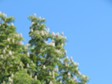 Blossoms on a Chestnut tree silhouetted against the blue sky of Béziers