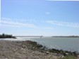 The breakwater and small lighthouse at the mouth of the River Aude..