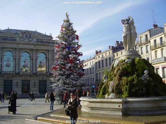 The Christmas Tree next to the Fountain of the "Trois Graces" in the centre of Montpellier.