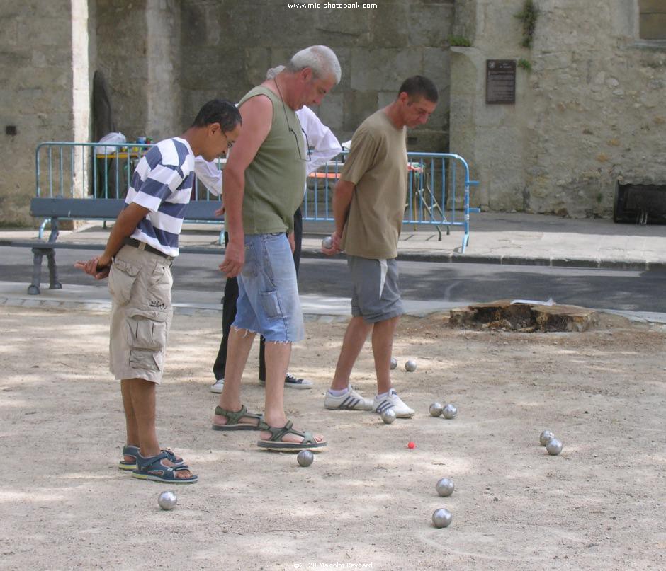 A game of "Petanques" gets under way in the Place de Saint-Jacques in Béziers.