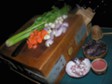 Some lean beef, Lardons (chopped bacon) to add a fat content, Onions or Shallots, Garlic de Lautrec, Mushrooms, Dijon Mustard and Goose or Duck fat for frying