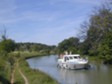 A hire boat cruising gently down the Midi Canal near the Village of Quarante