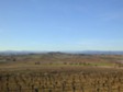 Looking across a vineyard and countryside near Maraussan, with the mountains of the Haute Langedoc Regional Park in the distance