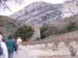 Hill walking in the Corbières. The small church of St Felix at Castelmaur with the limestone mountains as a backdrop