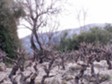 Vines having been pre-pruned waiting for the final pruning. In the background are the limestone mountains that separate the Corbières from the sea