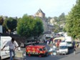 Cassagnes Bégonhès near Rodez in the region known as Ségala on market day. Inset : the making of Aligot a speciality of the region.
