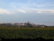 Early evening looking across the vineyards to the Cathedral of St Nazaire, above the valley of the River Orb, in Béziers