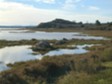 The edge of the Etang de Bages near the village of Peyriac de Mer, South of Narbonne, with the Pyrenées, on the border with Spain, in the background