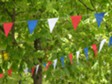 Liberté, égalité, fraternité - These 3 words are sometimes associated with the 3 colors of the French flag, but there is no historical connection - pennants in the village of Cessenon sur Orb, Northwest of Béziers
