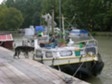 Hélène inspecting what is now a rare sight, an old "live aboard" boat - complete with chimneys and the stack of timber to keep themselves warm for the coming winter