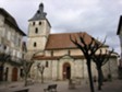 Across the river into the Main Square of Cajarc in the Department of Lot, with it's Church