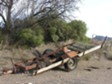 Walking "Auguste" and "Penny" in the vineyards around the Village of Cascastel in the Corbières Hills - and an old farm trailer (probably for transporting barrels of wine)