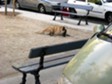 During the work of installing the panels, Penny had found a stick and was contentedly destroying it in a corner of the square.