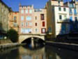 Approaching the lock in the town centre one can look back at the old Roman bridge which carried the "Via Domitia" on its way from Italy to Hispania. The bridge has shops built alongside both sides so pedestrians are unaware of the Roman built Canal de la Robine beneath their feet