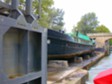 First look at the entrance to the lock to the second section of the Canal du Jonction from the river Aude, there is a drydock in the complex double lock