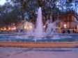 As dusk falls in the "Esplanade Charles de Gaulle" and the warm sun is replaced by night the clear sky means the temperature drops quite quickly, but the lights in the features such as this fountain give a magic feel to the heart of this town, the Préfecture of the Hérault, Montpellier.