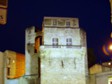 The Babotte Tower by night floodlit and standing proud on its corner of the "Enclosed Community" Montpellier
