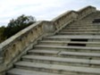 The broad stone steps leading up to the tower and the carved stone balustrading