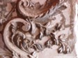 Château: Gypsum moulding in a room in the Château at Cascastel in the Corbières. Unfortunately there is no money available for the restoration of the moulding which dates from the 17th early 18th century, it is on all the walls and roccoco in style. The architect overseeing the renovations says that this kind of decoration, although common further north in France, was hardly known in the Midi so that this room in the Château is unique. The gypsum might well have come from the mines at Portel des Corbières