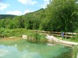 The first swimming session of the year - Quintillan Pool in the Corbières - and sunbathing after a swim - Auguste, hiding from the fish and frogs!
