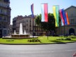 Simply a few "snaps" taken whilst on the walk from home to the town centre, a roudabout with fountain, flags and a background of the architecture of the town