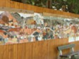 "Fresque collective", a montage that was put together by lots of people using the natural colours of the rocks and soils of the garrigue - "A super idea - very different from the "posh" Béziers Exhibition - this "Banner by various artists is quite a special evocation of the Albas "Secret Valley" - Malcolm" - Right end