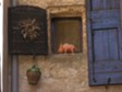 The Village of Saint Guilhem-le-Désert, nestling in it's tributary of the River Herault - a close up of the "Boar" in the window