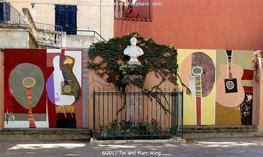 The Memorial to Baron François Berge, born on the 11 March 1779 in Collioure on the Roussillon Coast - now with rather colourful side panels
