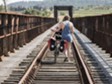 Kim Mackrell: "Cycling in France, the route took us over a railway bridge."